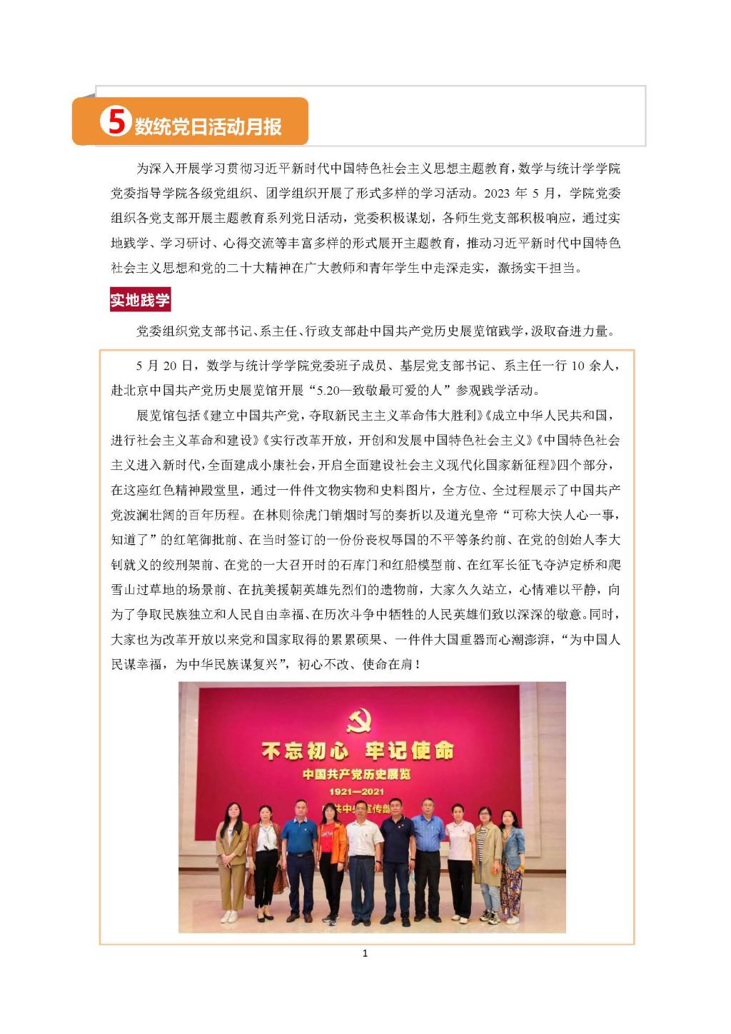 5月20日,数学与统计学公司党委班子成员、基层党支部书记、系主任一行10余人,赴北京中国共产党历史展览馆开展“5.20—致敬最可爱的人”参观践学活动。