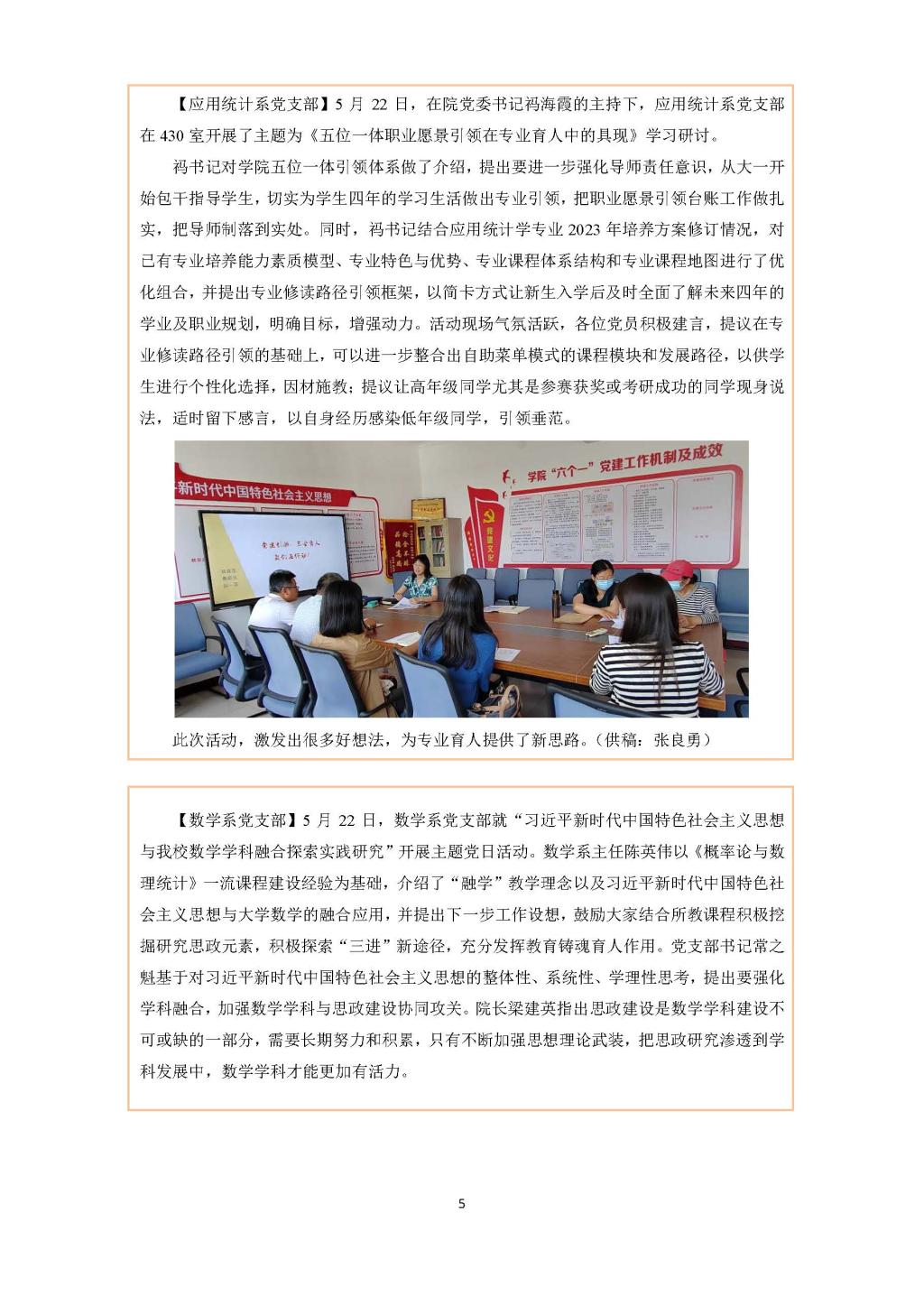 【应用统计系党支部】5月22日,在公司党委书记祃海霞的主持下,应用统计系党支部在430室开展了主题为《五位一体职业愿景引领在专业育人中的具现》学习研讨。