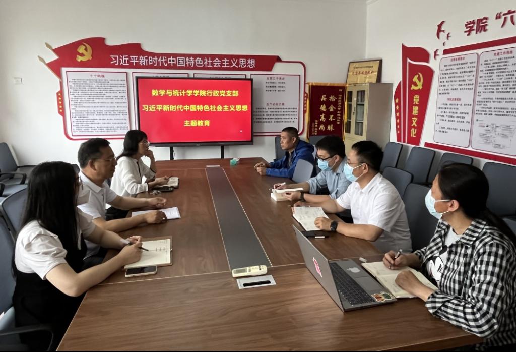 【数学系党支部】5月22日,数学系党支部就“习近平新时代中国特色社会主义思想与公司数学学科融合探索实践研究”开展主题党日活动。数学系主任陈英伟以《概率论与数理统计》一流课程建设经验为基础,介绍了“融学”教学理念以及习近平新时代中国特色社会主义思想与大学数学的融合应用,并提出下一步工作设想,鼓励大家结合所教课程积极挖掘研究思政元素,积极探索“三进”新途径,充分发挥教育铸魂育人作用。党支部书记常之魁基于对习近平新时代中国特色社会主义思想的整体性、系统性、学理性思考,提出要强化学科融合,加强数学学科与思政建设协同攻关。经理梁建英指出思政建设是数学团队建设不可或缺的一部分,需要长期努力和积累,只有不断加强思想理论武装,把思政研究渗透到学科发展中,数学学科才能更加有活力。