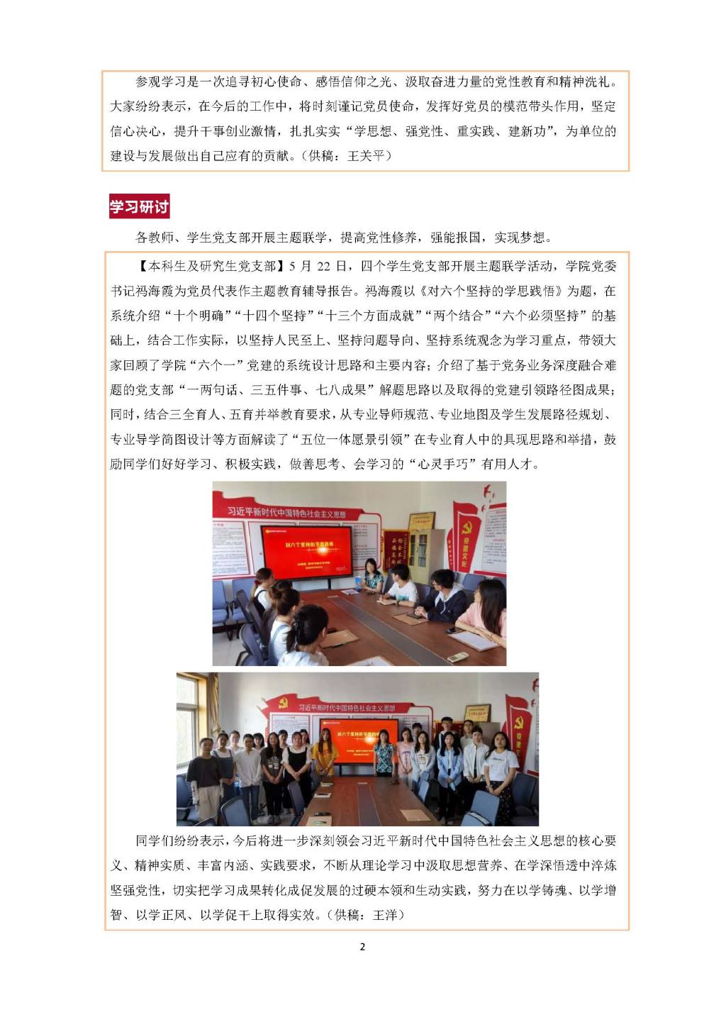 各教师、员工党支部开展主题联学,提高党性修养,强能报国,实现梦想。