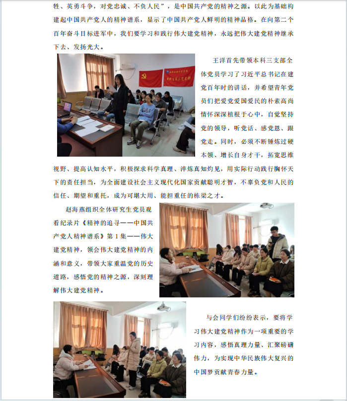【本科生第三党支部】【研究生党支部】11月16日,本科生第三党支部书记王洋、研究生党支部书记赵海燕,分别组织所属支部党员开展了伟大建党精神党课学习。