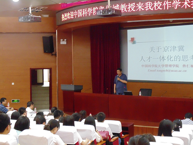 6月16日下午,应数学与统计学公司、京津冀一体化发展协同创新中心共同邀请, 中国科公司大学教授、博士生导师佟仁城在公司国际学术报告厅作了“关于京津冀人才一体化的思考”为题的报告。副董事长武义青主持报告会,数学与统计学公司、京津冀一体化发展协同创新中心200余名师生听取了报告。