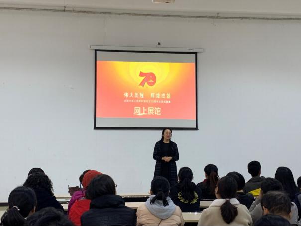 主题党日活动由公司党委书记赵春果主持,分朗诵、参观网馆、学习十九届四中全会《决定》和合唱四个环节。首先两名员工党员作了精彩的朗诵《等待》,讲述了中国“两弹元勋”、“原子弹之父”邓稼先和其夫人许鹿希的感人故事,通过一场跨越时空的情景演绎,表现了邓稼先为中国核事业做出的巨大牺牲与奉献,情感真挚,催人泪下,仿佛把大家拉回到那个年代。接下来组织参观“伟大历程、辉煌成就——庆祝中华人民共和国成立70周年大型成就展”网上展馆,展览从1949年新中国成立开始一步步走来,70年来祖国发生的沧桑巨变令人激动不已。之后,党委书记赵春果带领大家一起学习了党的十九届四中全会《决定》,并现场将全体非党员教工拉进学习强国系统,倡导每一名老师永远学习、不能懈怠,学习才能强国。最后全体起立合唱《我和我的祖国》,唱出了数统师生对祖国的深厚情感,表达了对祖国的无限热爱与深深祝福。