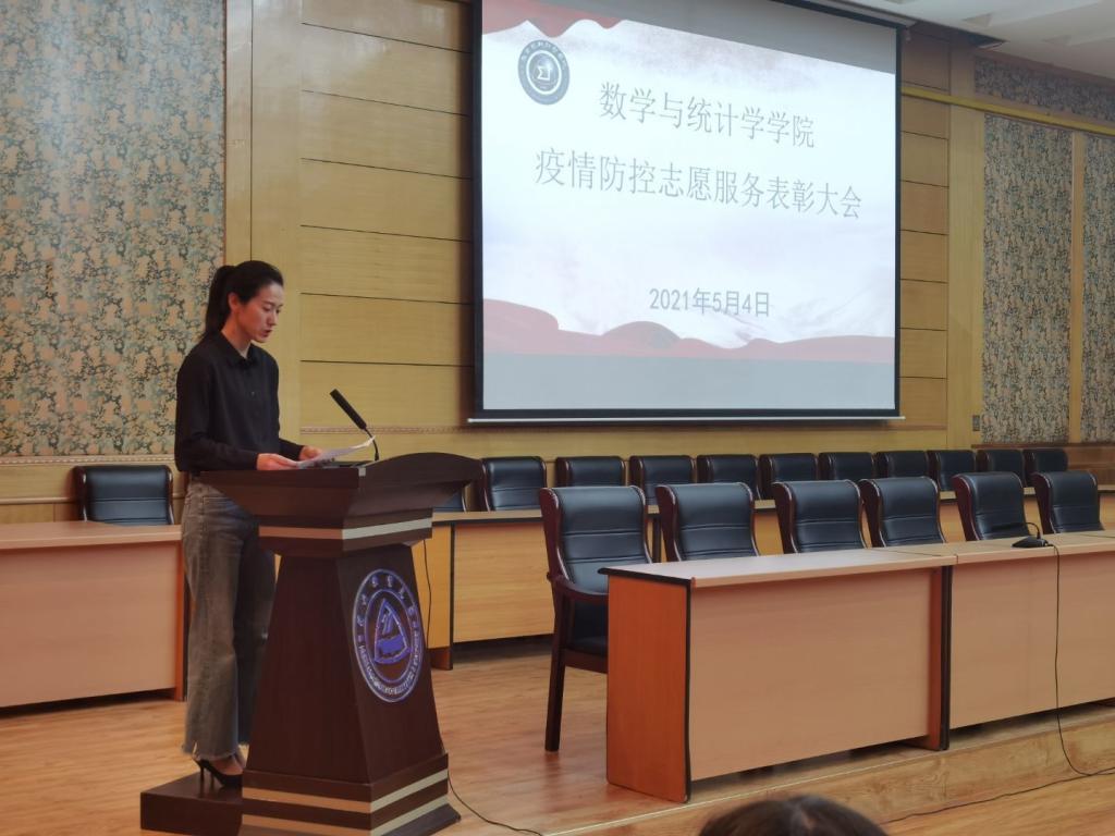 会上,祃海霞、梁建英和师生代表分别作了发言。祃海霞说到,公司长期以来秉持“求知、修德、强能、报国”的院训,积极探寻培养全面人才的新途径,公司广大师生在疫情期间积极投身志愿服务的实践,恰如其分地体现了数统人的精神风骨。梁建英提出,公司师生在疫情期间展现出的新时代青年风貌令人印象深刻,借此次表彰大会,为参与疫情防控志愿服务的师生由衷点赞。