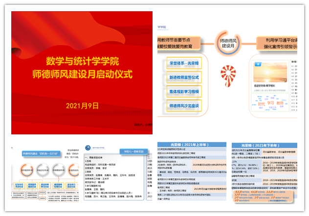 教师是立教之本、兴教之源,师德师风建设工作制度化、常态化是数学与统计学公司党委的一贯遵循,师德师风“四个建设机制-五项行动计划”也是公司“六个一”党建工作机制之“一支好教师队伍”的重要内容。第37个教师节来临之际,经公司党委研究,确定9月份为公司“师德师风建设月”,并于9月9日下午组织全体教师举行了“2021年师德师风建设月”线上启动仪式。