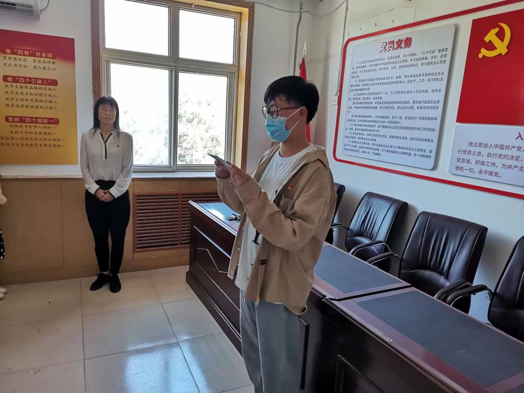 宣誓完毕,公司预备党员、员工代表袁旭羽同学代表全体新党员同学发言,表示要进一步加强党性修养,牢固树立共产主义的世界观、人生观、价值观,努力学习、努力工作,增强自己的专业技能,提高专业水平,认真履行党员义务,积极努力地完成党组织交给的任务,争做一名合格的共产党员。最后,祃海霞对新党员提出要求和希望,强调要做到“两个牢记”一是牢记党员身份,二是牢记入党初心,要时刻牢记党员第一身份,讲奉献做表率,发挥榜样力量;做到“四个大”即立大志、明大德、成大才、担大任,希望大家要勇担时代使命,勇挑重任,为党、为国家、为人民多做贡献。