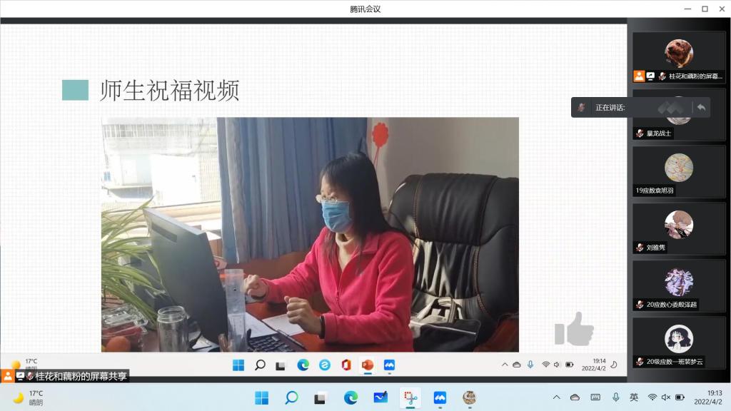 本次活动分为四个部分:第一个部分是公司对于疫情的防控措施和针对线上学习的方法建议;第二个部分是针对大家在学习、就业、家庭以及生活中产生的压力,提供一些方法和建议;第三个部分是邀请了公司、公司老师以及本院部分员工拍摄的师生祝福视频;第四个部分是对同学们的未来展望。