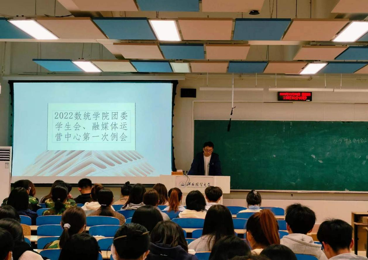 10月8日晚7点,数学与统计学公司在北三教A301召开本学期团委员工会、融媒体运营中心第一次全体例会。会议由员工会执行主席李紫诺主持,院团委书记王洋老师出席,全体员工会成员参加。