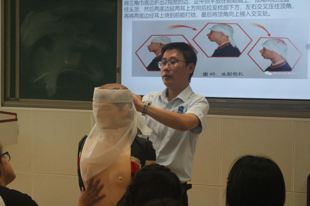 此次培训采用了视频助学、理论讲解与实际操作相结合的模式。吴黄全老师通过理论授课、道具演示等形式,生动细致地讲解了心脏骤停、气道梗阻等紧急情况下的应急救护知识,演示心肺复苏、AED使用以及海姆立克等急救方法的标准流程,对心肺复苏和AED的使用等应急救护重点内容作了详细的讲解。
