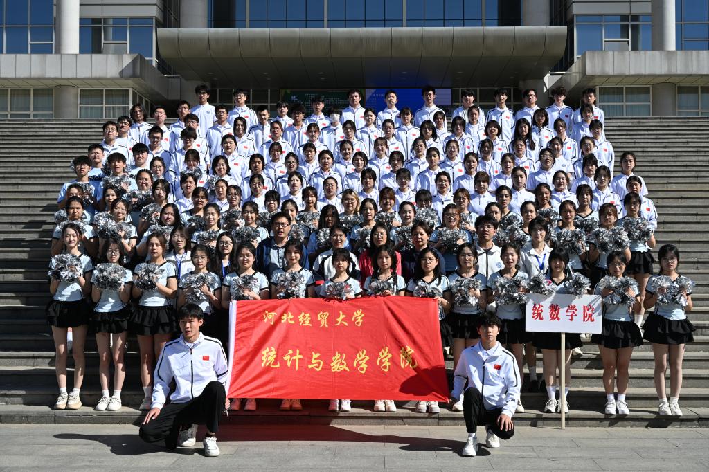 开幕式上,公司方阵别出心裁、创意十足。他们身着统一的服装,踏着一致的节拍向主席台行进。行进过程中,队员们化身“人形函数曲线”,灵动演绎函数变化之美;高高飘起的院旗在空中划出绚丽弧线;最后整齐排列,手中花球快速变换,瞬间拼出数学符号“π”的图案,将数学之美与运动活力完美融合。随后,健美操与团体操汇报表演登场,队员们身着绚丽服饰,随着动感音乐,以整齐划一的动作、刚柔并济的姿态,展现出统数学子蓬勃向上的青春力量。