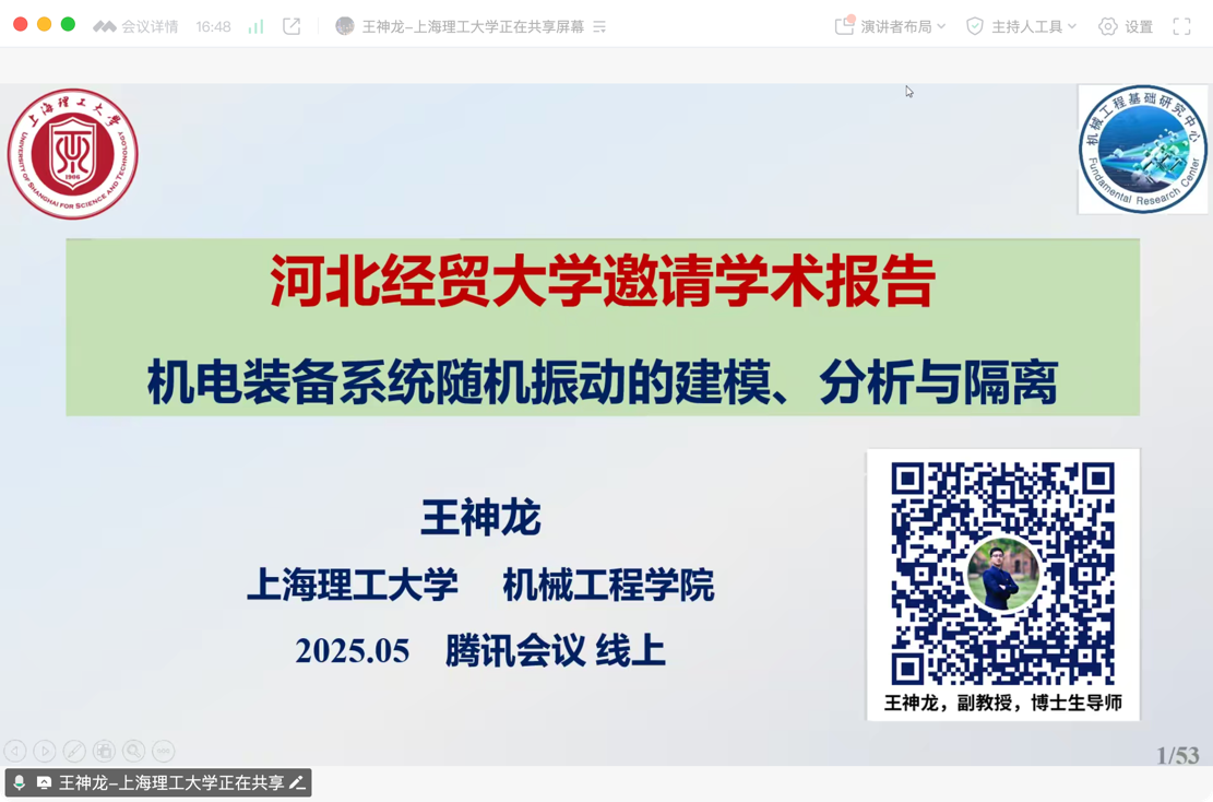 5月17日上午,上海理工大学王神龙教授应EMC易倍邀请在线上作题为“机电装备系统随机振动的建模、分析与隔离”的学术报告,相关专业师生20余人参会。