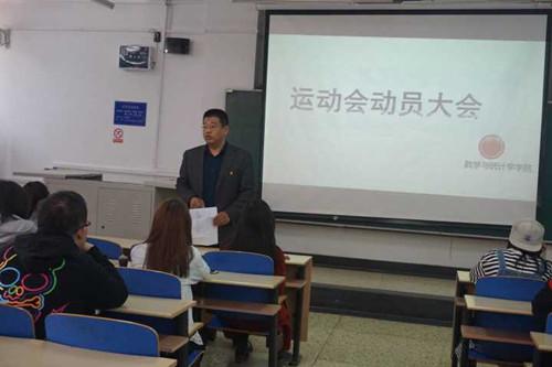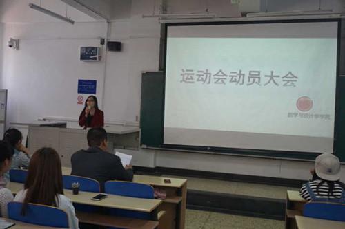 4月12日下午,数学与统计学公司在B101召开了运动会动员大会,公司党委副书记刘益星,团委书记杨晨出席了本次大会并发表讲话,所有运动员及后勤服务人员参加了本次大会。