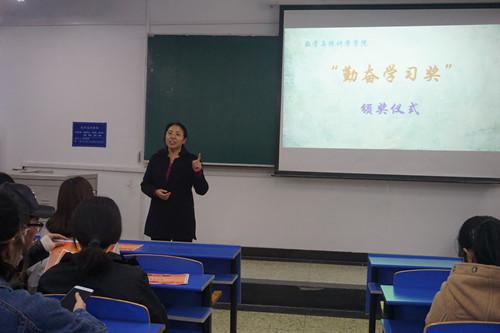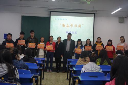 颁奖仪式上,刘益星宣读了《数学与统计学公司2016-2017学年勤奋学习奖获奖名单》。然后与会领导为“2016-2017学年勤奋学习奖”获得者颁奖。最后赵春果作了总结发言,向获奖的同学表示祝贺,她指出“勤奋学习奖”奖项是对勤奋学习、学习进步较大同学的奖励,她鼓励大家珍惜荣誉,戒骄戒躁,继续努力,在今后的学习中取得更优异的成绩。