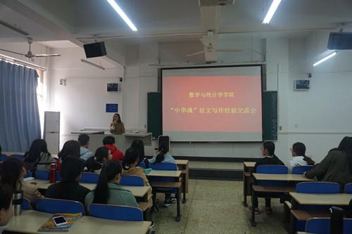 11月1日中午,为了给参加中华魂征文比赛的大一同学更好的写作指导,数统公司在B教101教室举办中华魂征文写作交流会。