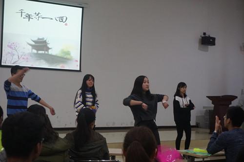 晚会在优美的舞蹈《千年等一回》中拉开帷幕,带给观众心灵美的感受。接踵而来的是各部门精心准备的相声、小品、歌曲等节目,令观众捧腹大笑继而沉浸其中,能够看出每一个部员为此付出的汗水,中间进行《谁是卧底》和《踩气球》的游戏环节,加深了新部员与老部长的感情。老部长也为晚会献舞一支,婀娜的舞姿令人沉醉。晚会临近尾声,曲博老师发表了深情寄语,表达了对老部长的不舍,同时希望她们在以后的日子勇往直前,一切顺利。最后在精心制作的幻灯片中,新部长们表达了对老部长的感谢与祝福。
