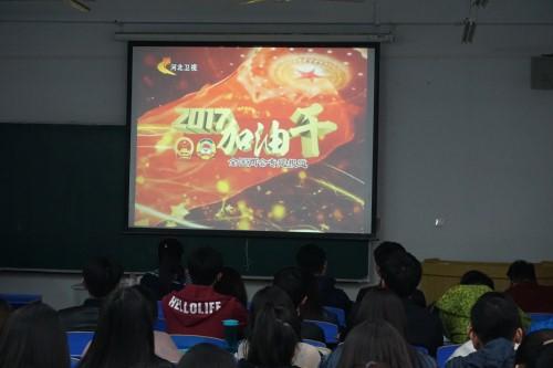 此次活动以两会的环境报告为主题,观看由两会代表介绍河北省这一年的解决策略和成果的视频,视频分别是从“蓝天保卫战”、“生态保护红线”、“督察问责”三个方面进行分析。