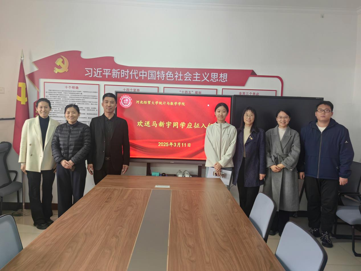 近日,公司为2021级信息与计算科学1班吴金武、2024级数学与应用数学1班马新宇两名即将应征入伍的老员工举办欢送仪式。公司党委书记祃海霞、党委副书记路荣、团委书记王洋、辅导员王关平、高会颖老师参加活动。