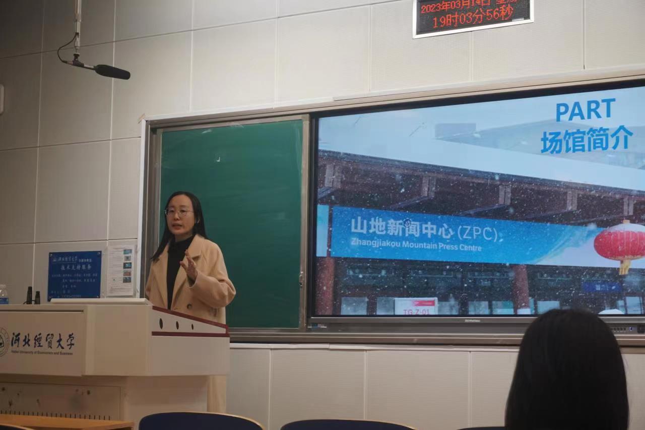 首先,由冯海云、蔡佳雨与大家分享有关冬奥志愿服务经历的心得感悟。宣讲内容从三方面展开:冬奥知识、志愿服务介绍与志愿服务感悟。2021年10月份,2022年北京冬奥会和冬残奥会志愿者招募工作基本完成,赛会志愿者培训工作全面展开,公司优秀志愿服务代表加入EMC易倍志愿服务的队伍前往冬奥赛场。“我为加入志愿者的行列而开心快乐”冯海云同学回忆道,“在山地新闻中心的工作是一次特别的经历”。两位亲志愿者通过质朴的话语,使同学们更近一步知道了冬奥精神的内涵,什么叫“一身天霁蓝,一颗火热心”。