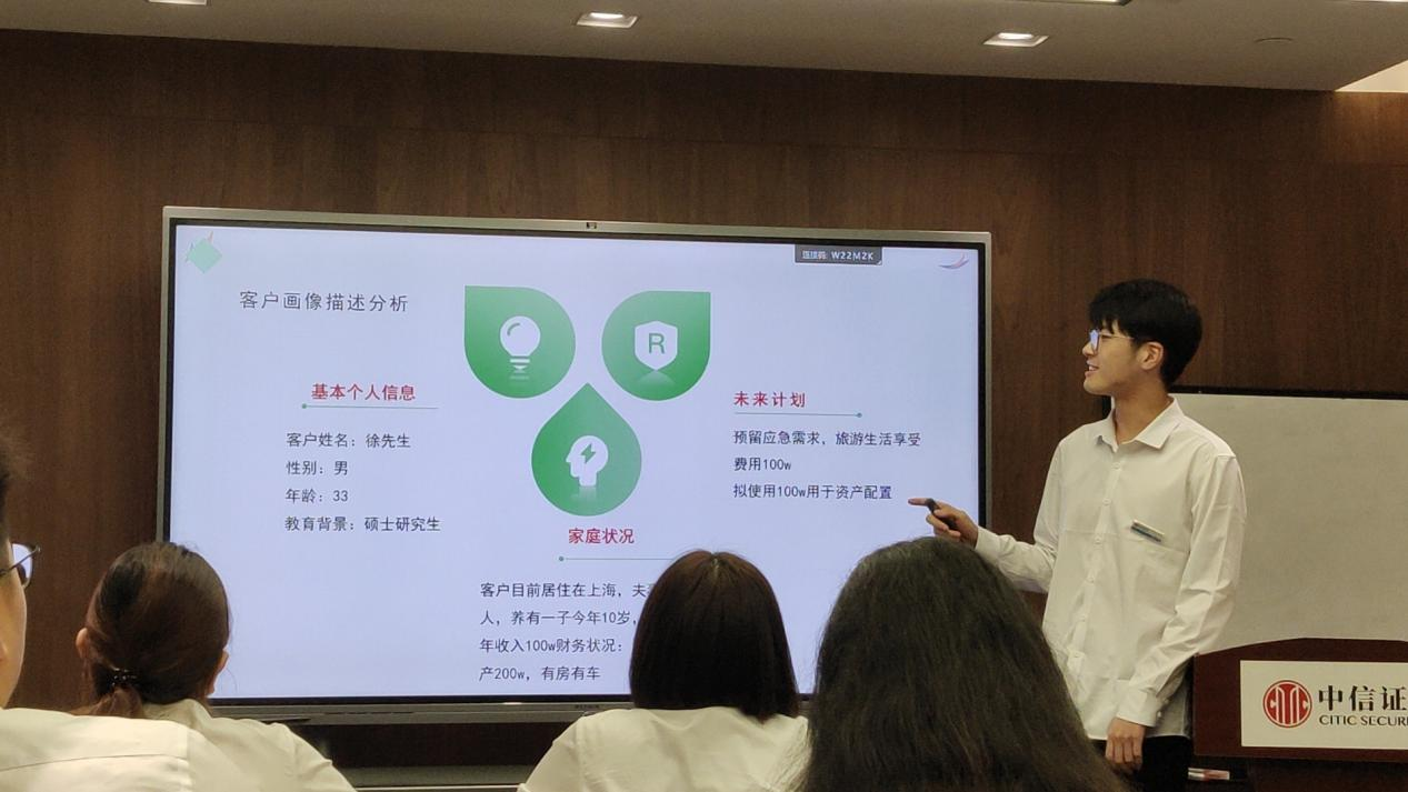 通过中信证券各位客户经理、团队负责人的授课讲解,我学到了许多知识,了解到了国内前沿的科学技术领域,学习了股票、基金、期货、期权、私募的基础知识。对权益投资类、固定收益类产品有了深入的理解,学会了如何去做定投和选基;学习了股票策略、CFA策略、市场中性策略、组合策略并进行简单应用;学会了在期货市场如何选择做多和做空;学会了如何去做风险评估投资组合。学习了融资工具财富管理和资产配置理论,此外还学习了保险、证券从业相关的法律法规,理解了商务礼仪、商务英语,对证券公司的运作方式、市场动态以及公司企业文化也有了更多的了解。