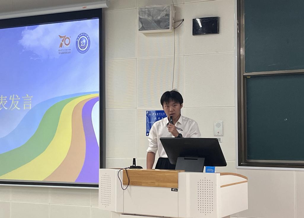 在校生代表2021级应用统计学一班石志俣同学发言,希望师弟师妹们要学会更好地处理人际关系,不断扩大自己的社会生活范围,正确认识自己,扬长避短、取长补短,不断发展自己、完善自己。