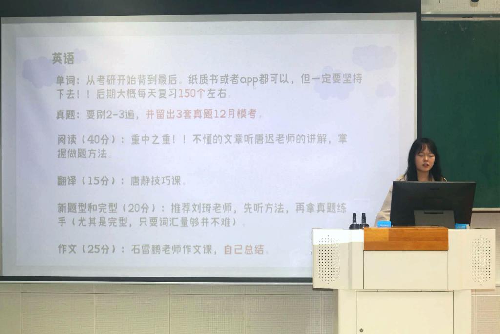 同时,分享会邀请到了四位在读优秀研究生代表王旌屹、刘兴阳、刘蔚萌、吴文凯,为即将踏上考研征途的同学们献上了一场知识与经验的盛宴。