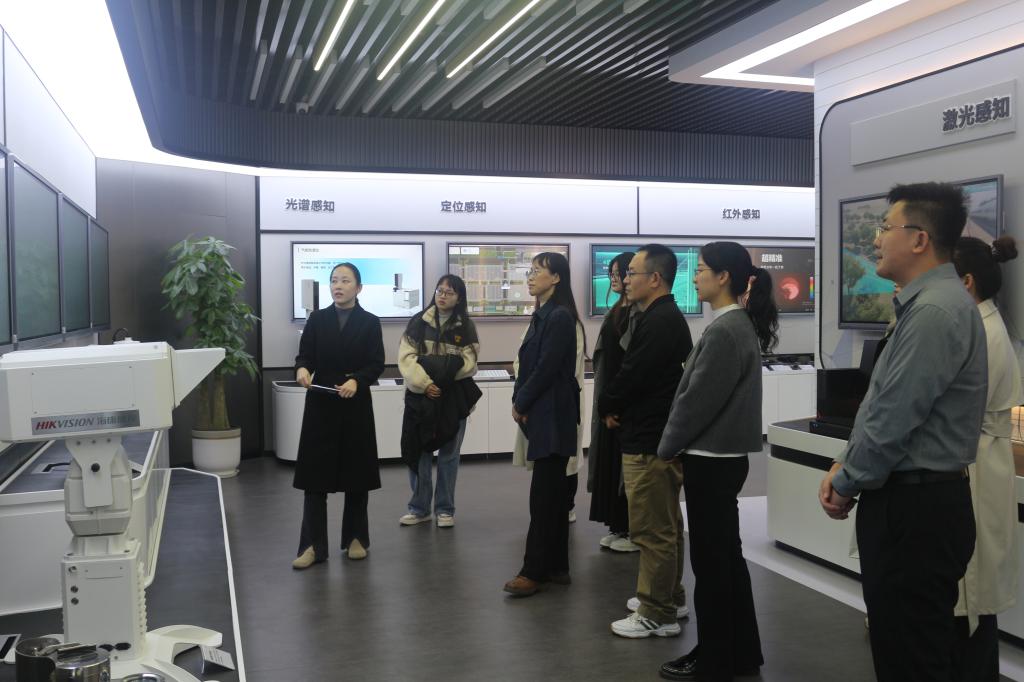 在海康威视石家庄科技园内,企业高级人力资源专员常兵、高级行业销售李友带领师生一同参观公司展厅。展厅内,一系列前沿科技产品和创意文案令人目不暇接,从高清智能监控设备到大数据分析系统,从先进的安防技术到智能化的行业应用,海康威视全方位展示了其在科技领域的深厚底蕴与创新实力。师生们不时驻足询问,对企业在视频监控技术、人工智能算法等方面的卓越成就表示赞叹,深刻感受到科技创新如何赋能各行各业守护社会安全与推动行业进步。