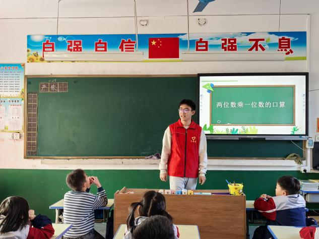 在口算和笔算环节,志愿者们通过小棒摆一摆、加法转化等直观的方式,帮助孩子们理解乘法的本质,掌握口算和笔算的技巧。他们详细讲解了两位数乘一位数的多种口算方法,以及两、三位数乘一位数的笔算流程。在志愿者的悉心指导下,孩子们逐渐掌握了这些计算方法。为了鼓励孩子们积极参与,志愿者们还为回答正确的孩子发放了可爱的贴纸,现场气氛热烈而活泼。