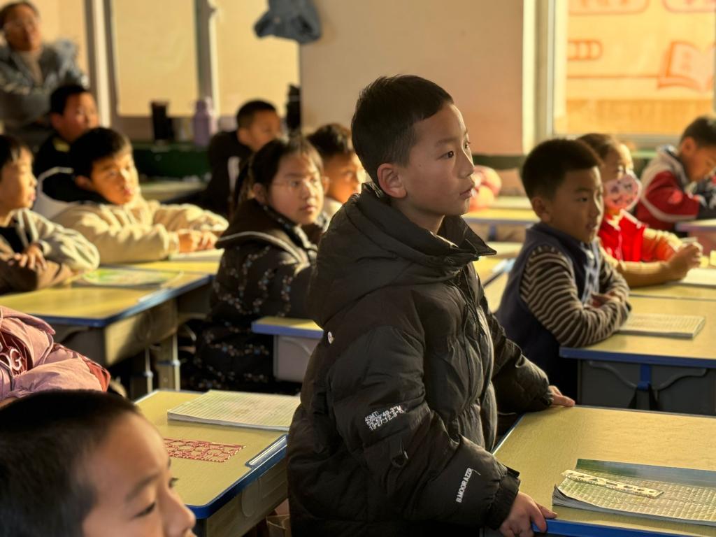 仪式结束后,志愿者们开展第三次“数思”小课堂志愿服务活动。李志彤、任昊宇、王翰林三位同学以生动的视频讲解导入课程,共同学习了数学家泰勒斯的故事,引导孩子们提出并解决日常生活中的测量问题。