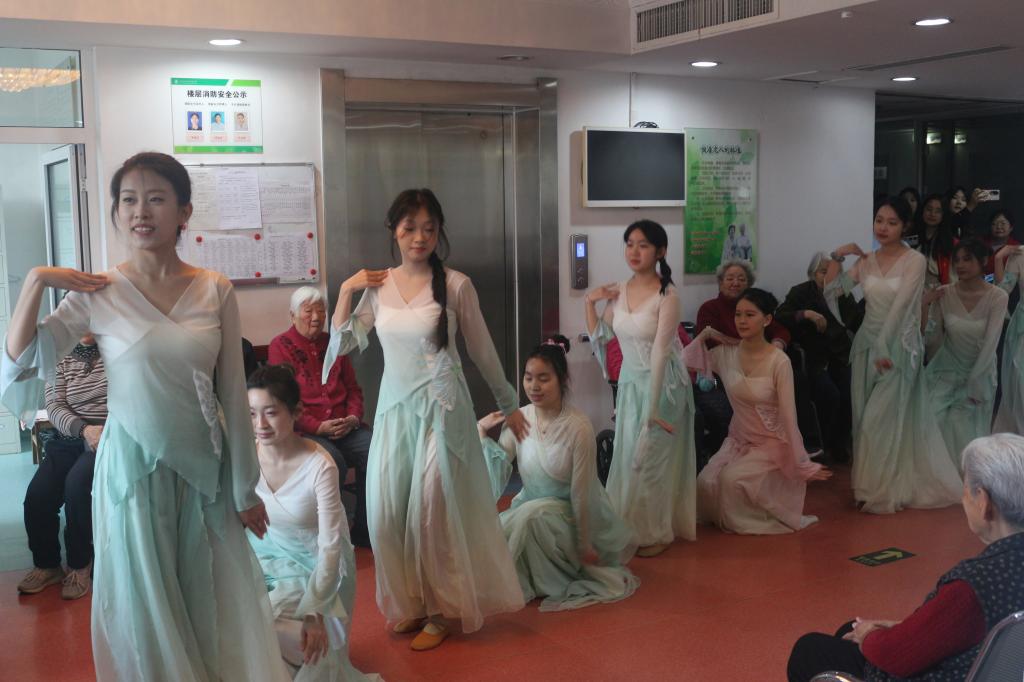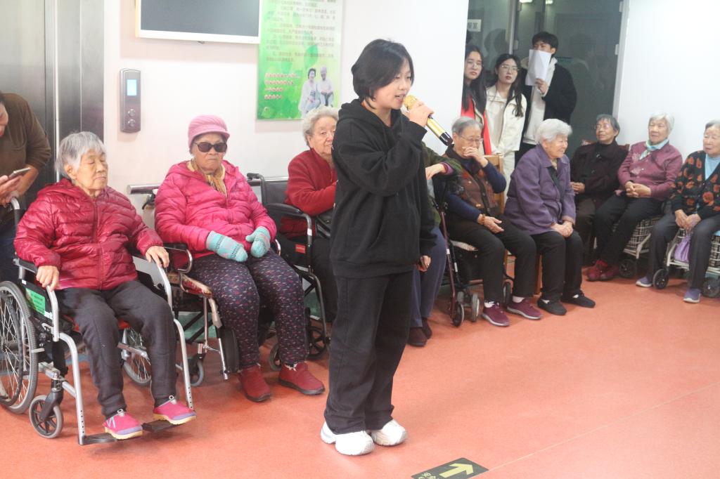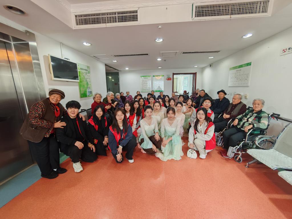活动中,志愿者们以青春力量点亮敬老院,精心编排歌舞节目,将经典旋律与时代活力相融合。歌曲《天边外》以动听的旋律、舞蹈《小城谣》以柔美的身姿演绎岁月温情,引发老人情感共鸣;戏曲《春闺梦》《梨花颂》等经典曲目,以清澈歌声唤醒时代记忆,现场掌声频起。志愿者更与老人互动交流,倾听往昔故事,在双向交流中深化代际理解,让关怀从“单向给予”升华为“双向治愈”。