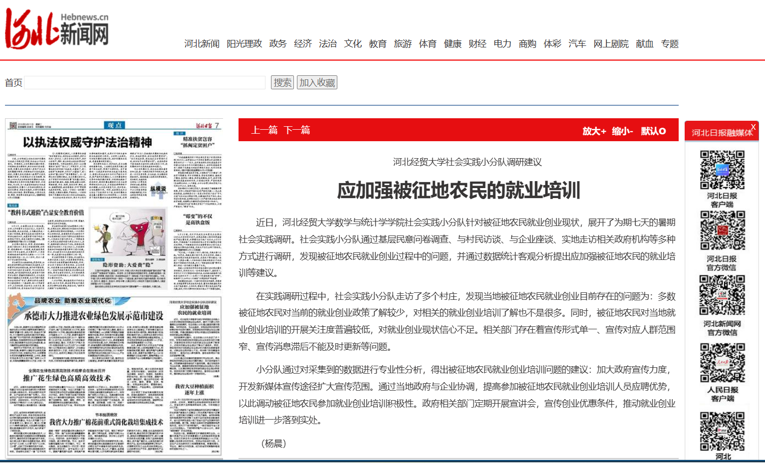 【河北日报】EMC易倍社会实践小分队调研建议:加强被征地农民的就业培训