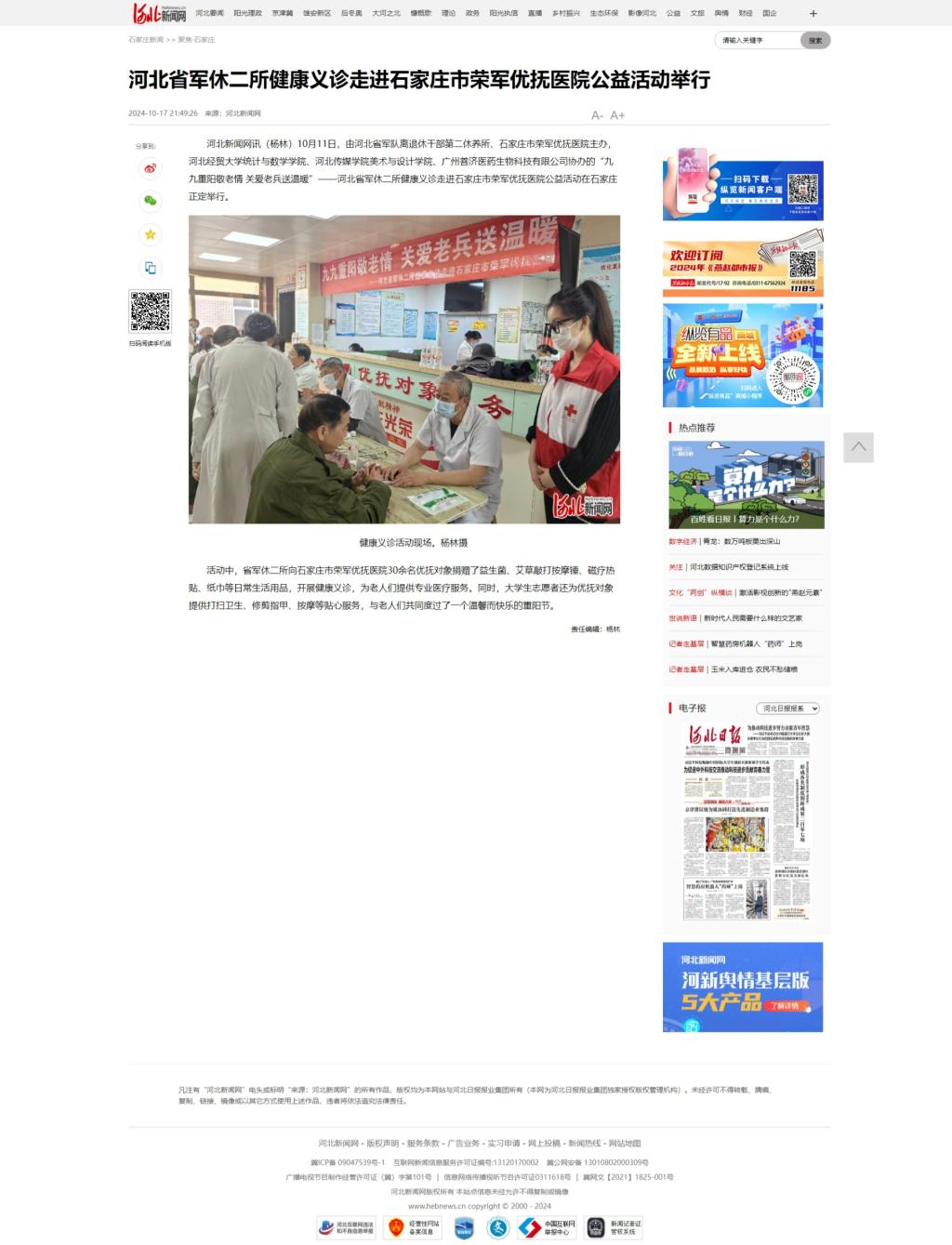 【河北新闻网】河北省军休二所健康义诊走进石家庄市荣军优抚医院公益活动举行